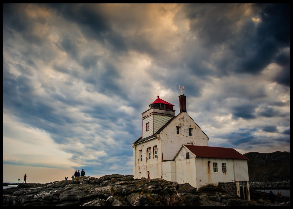 Flott bilde av det gamle fyret på Værøy i Lofoten