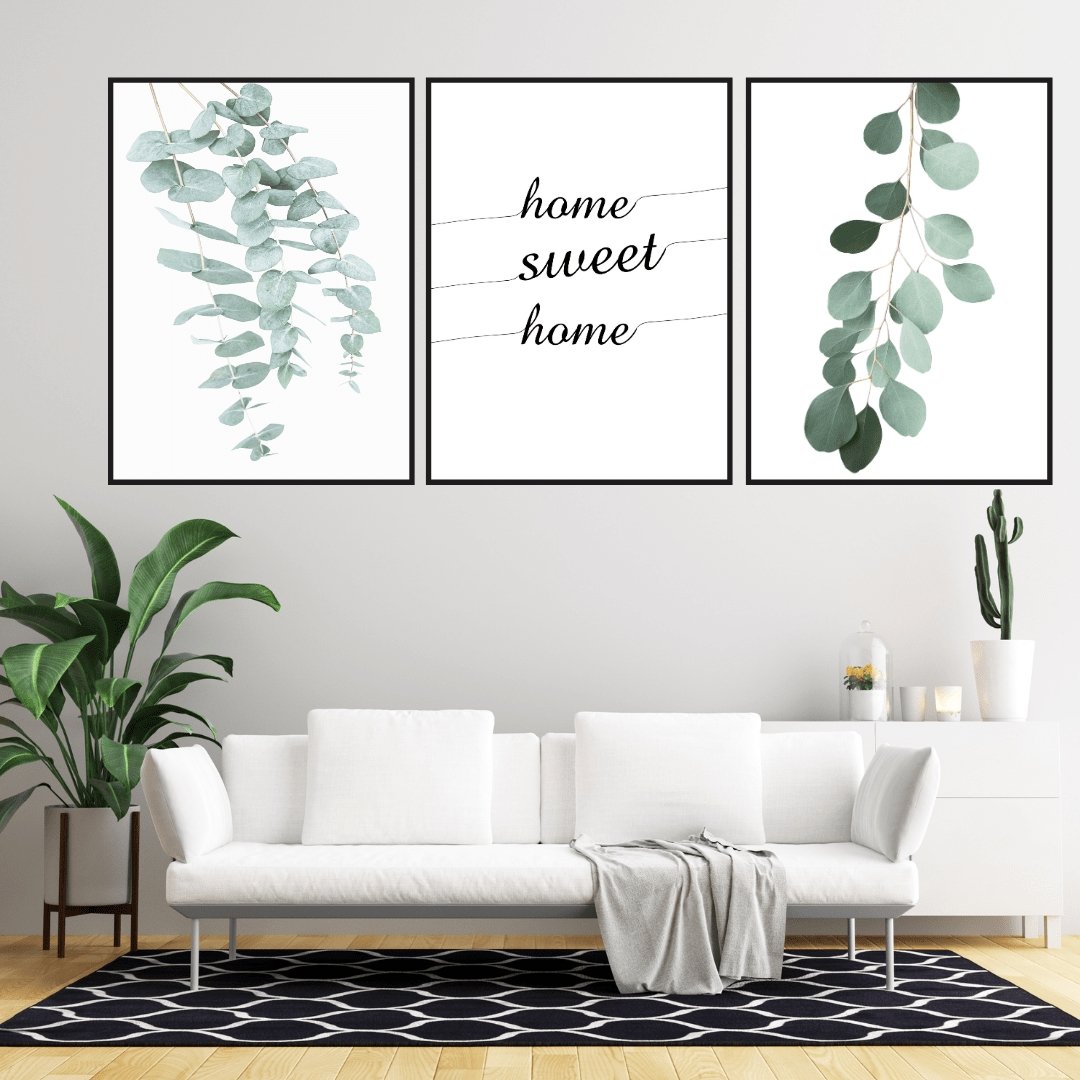 Koselig plakat med teksten "home sweet home" eller hjem kjære hjem på norsk.