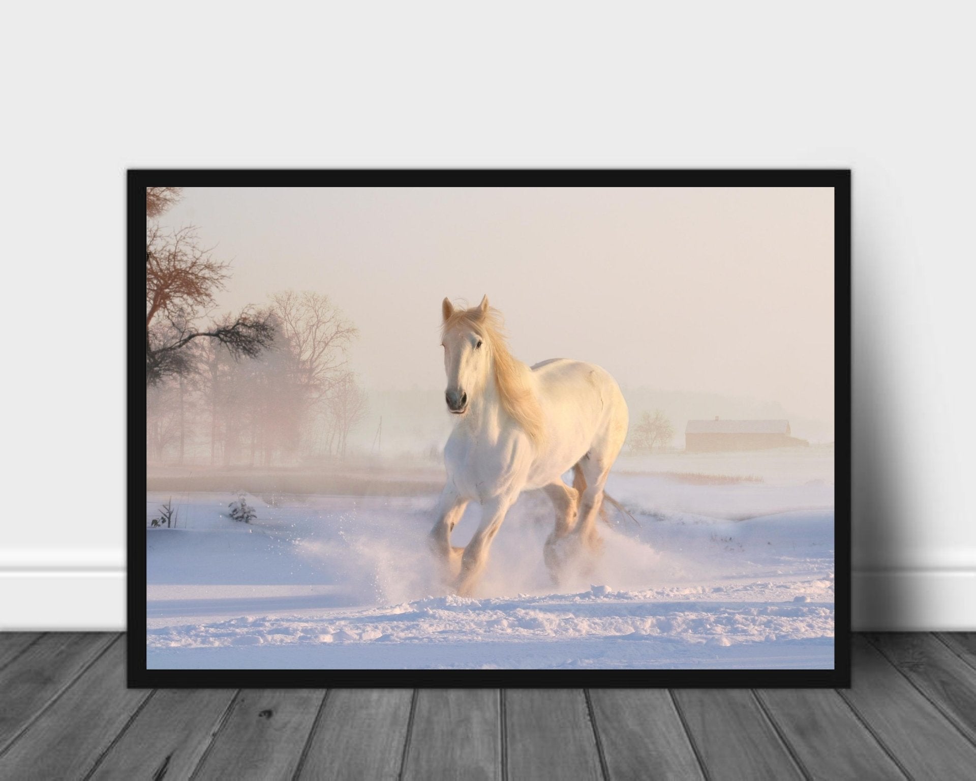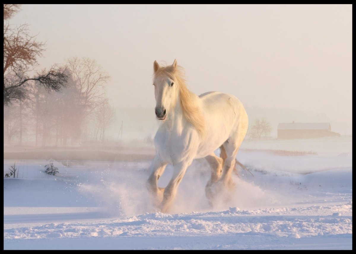 Hvit hest i snøen poster