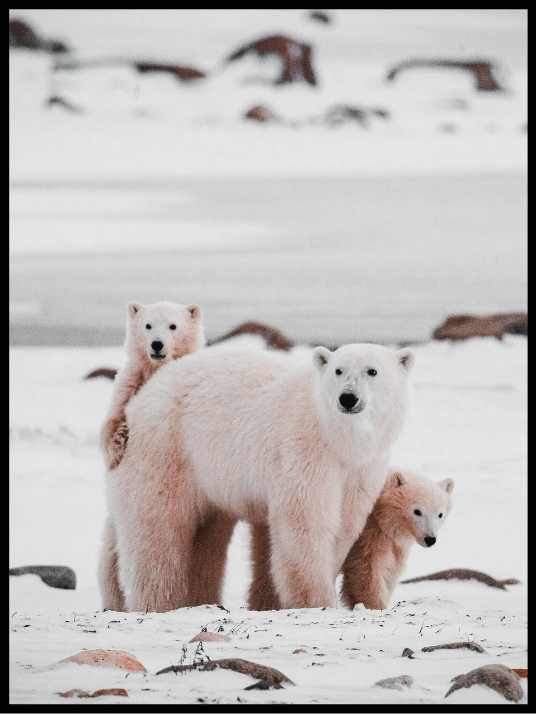 Vinterplakat av isbjørnfamilie. Denne plakaten passer svært godt på en bildevegg sammen med våre andre vinterplakater.