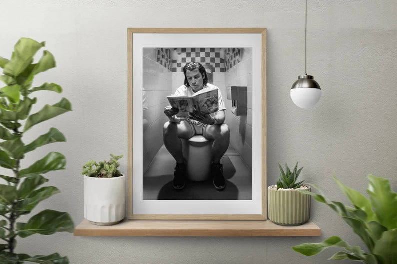 Plakat av John Travoltas toalettscene i pulp fiction i 1994.