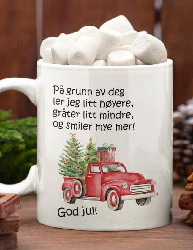 NB: Dette kruset ser best ut med rød innside. En julegave som garantert vil varme! Hva med å fylle kruset med noe godis, skrapelodd eller annet gøy og gi det i gave til en du er glad i? :)