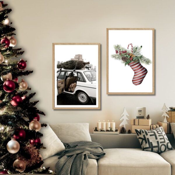 Koselig illustrasjon av julesokk. Julesokk kan kjøpes som plakat eller lerret.