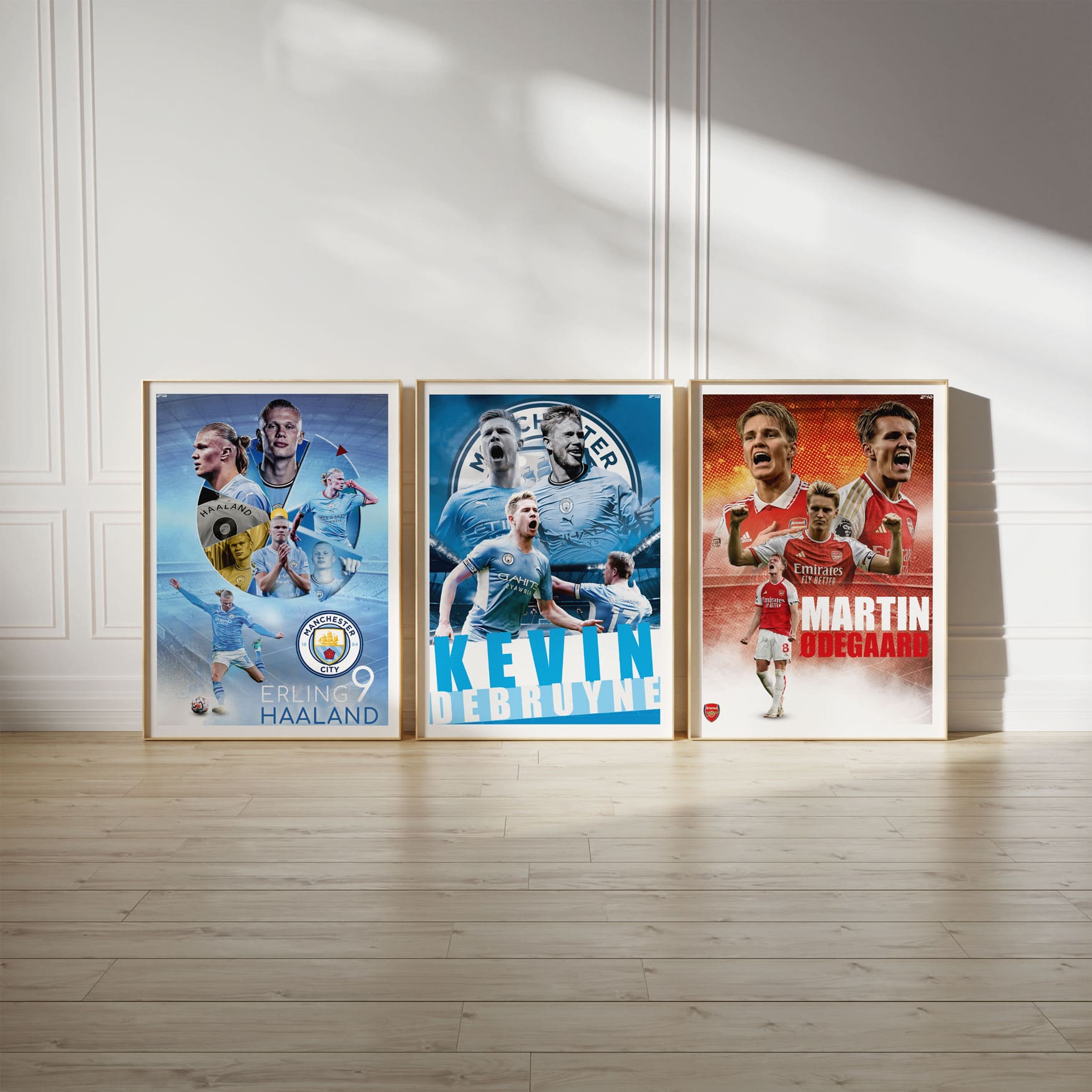 Inspirerende Design: Våre plakater er designet for å inspirere og motivere. Med levende farger og dynamiske bilder av Kevin De Bruyne i aksjon.
