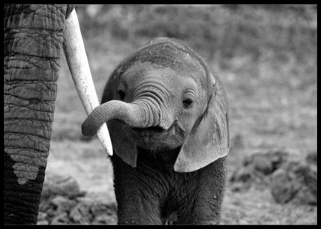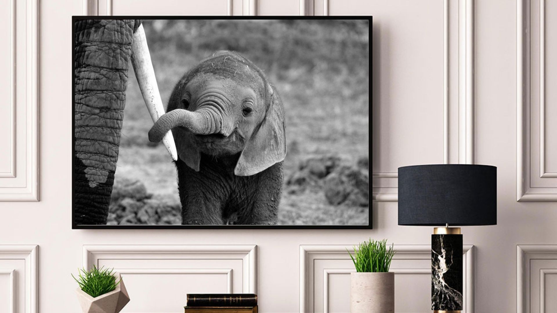 Plakat av en søt baby elefant, godt med noe og holde fast i.