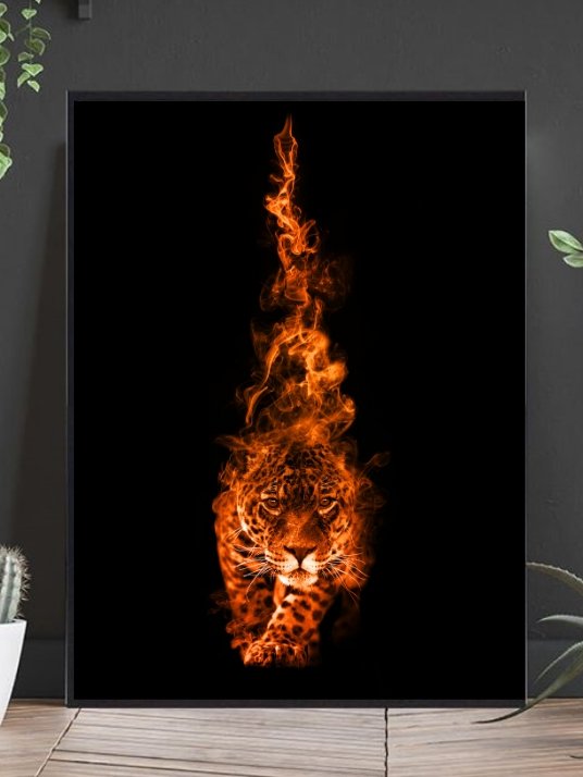 Plakat med fantastisk bilde av en leopard i natten, magisk uttrykk