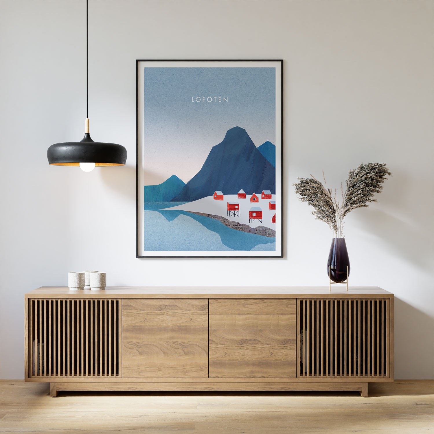 En flott kunstplakat av Lofoten som selges i samarbeid med den engelske kunstneren Henry Rivers.