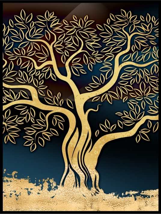 Luxury gold foil Abstract - Birds, Trees, Butterfly & Moon