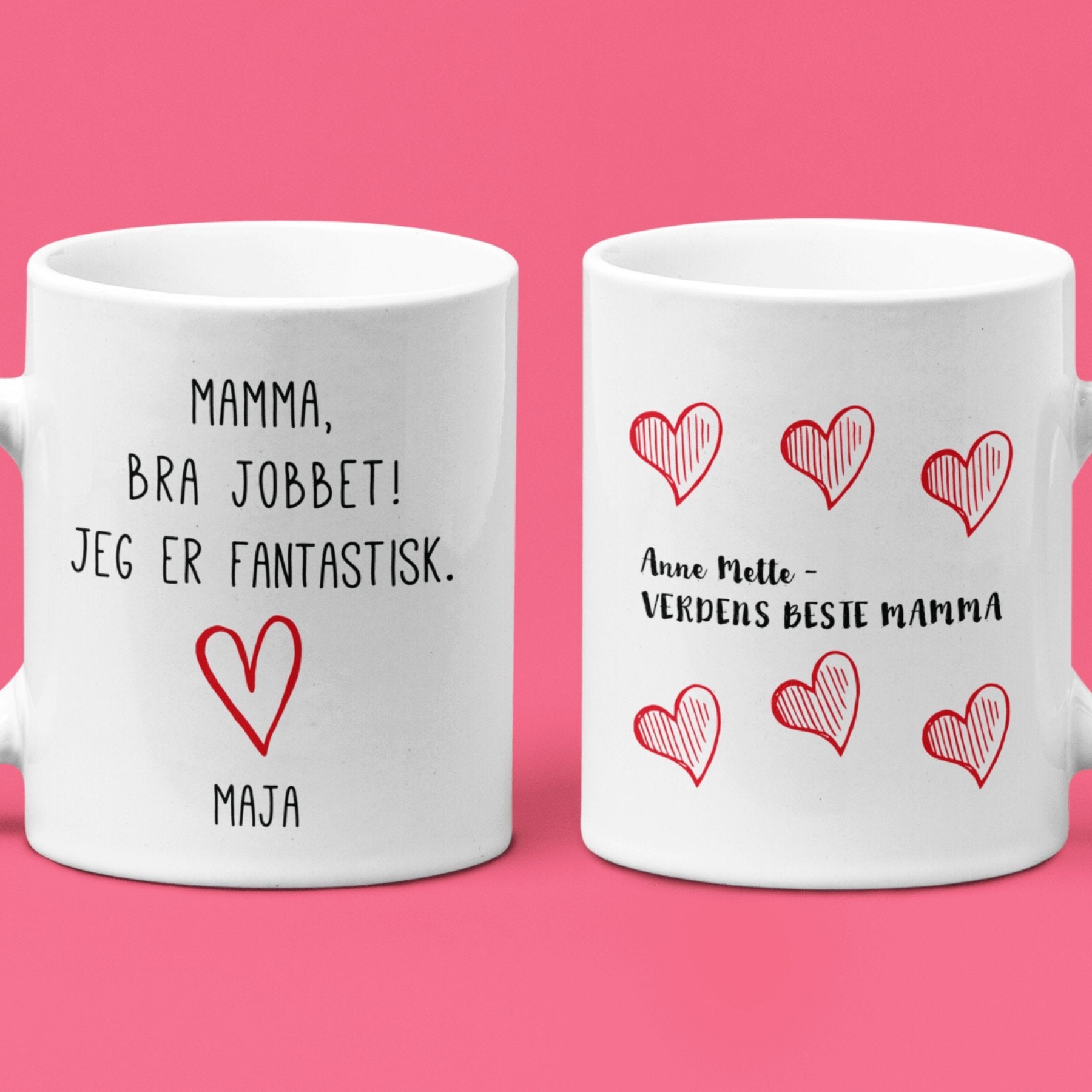 Ønsker du en personlig gave til moren din? Da har du funnet riktig gave! Skriv inn deres egne navn og gi en gave som garantert vil bety litt ekstra for mamma, og sannsynligvis få henne til å dra på smilebåndet :)