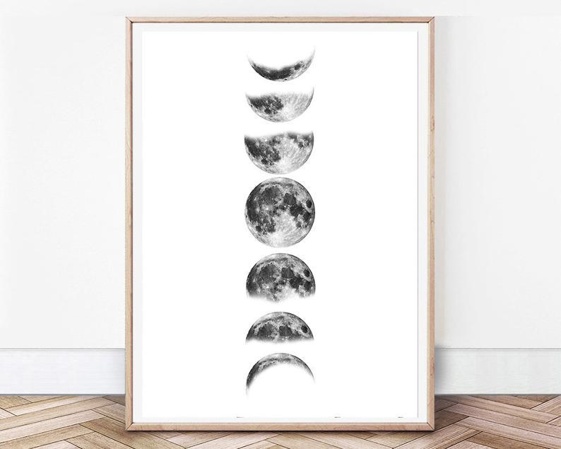 Nydelig og detaljrik plakat av de forskjellige månefasene. Denne passer svært godt sammen med våre andre plakater fra verdensrommet dersom du ønsker å lage en bildevegg. Se på bildene for inspirasjon.