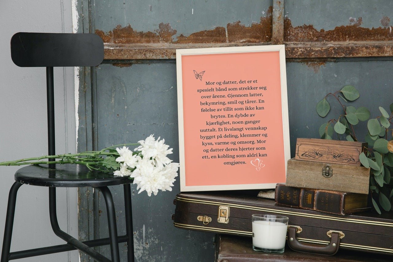 En fin plakat med vakre ord om forholdet mellom mor og datter. Du skriver selv inn navnene du ønsker skal stå på plakaten.