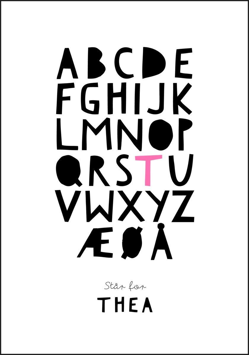 Navneplakat Alfabet - En flott og personlig plakat med rosa stempel