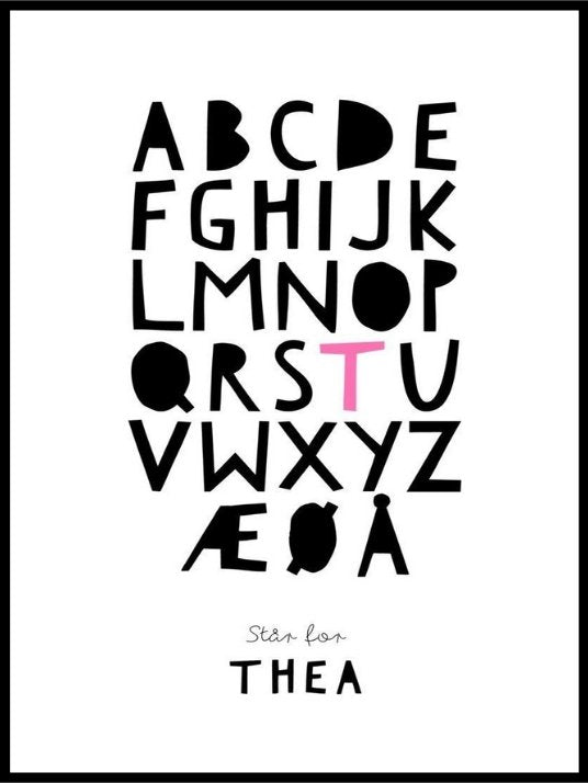 Alfabetplakaten er super som dåpsgave, fødselsgave eller en som overraskelse. Barn elsker sitt eget navn!