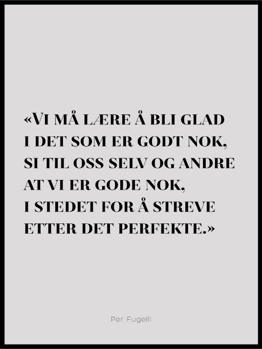 «Vi må lære å bli glad i det som er godt nok, si til oss selv og andre at vi er gode nok, i stedet for å streve etter det perfekte.»