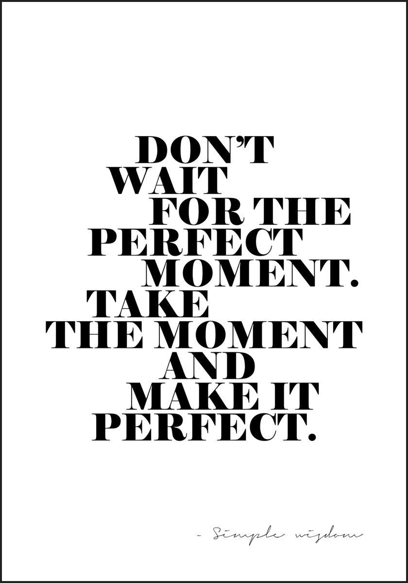 Dont wait for the perfect moment. . Minimalistisk tekst plakat, med et budskap vi trenger å bli minnet på. Ikke vent på det perfekte øyeblikk. . Ta øyeblikket og gjør det perfekt. Passer inn i alle moderne hjem. -Simpel wisdom -.