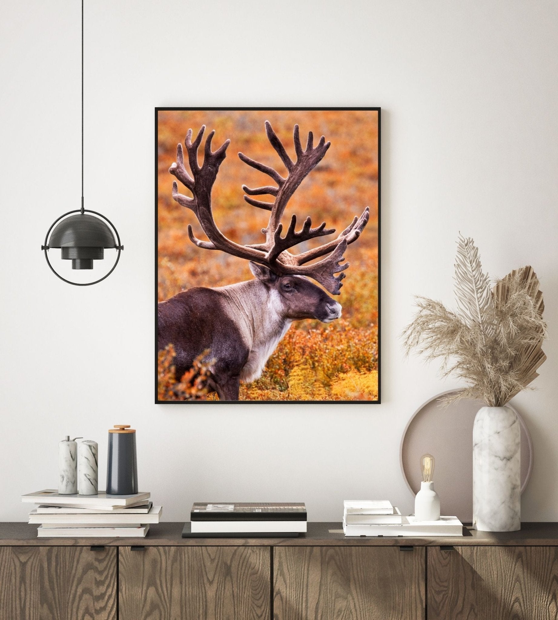 Plakat av en reinsdyr bukk med imponerende gevir.