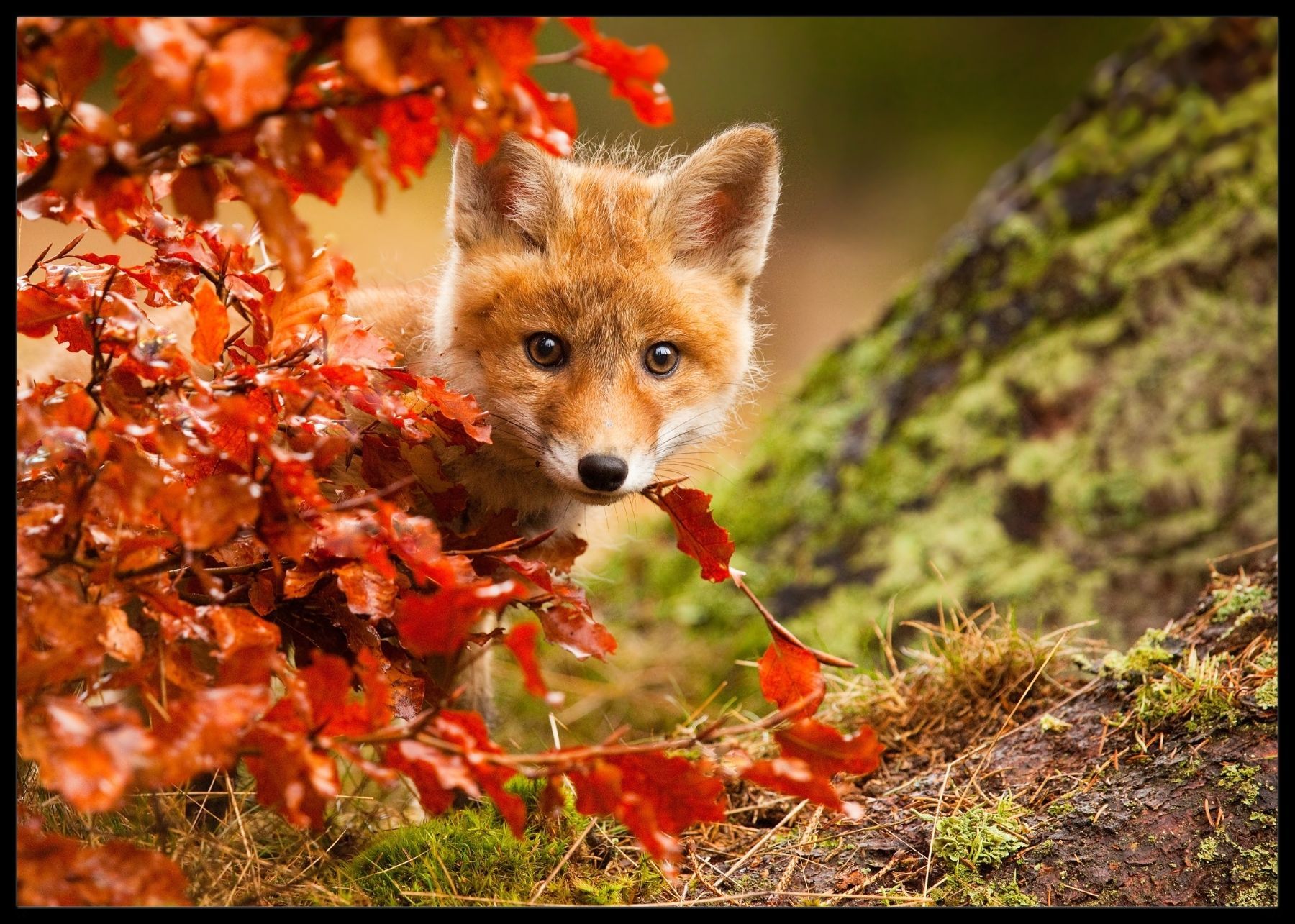 Plakat av en ung rødrev blant flotte høstfarger.