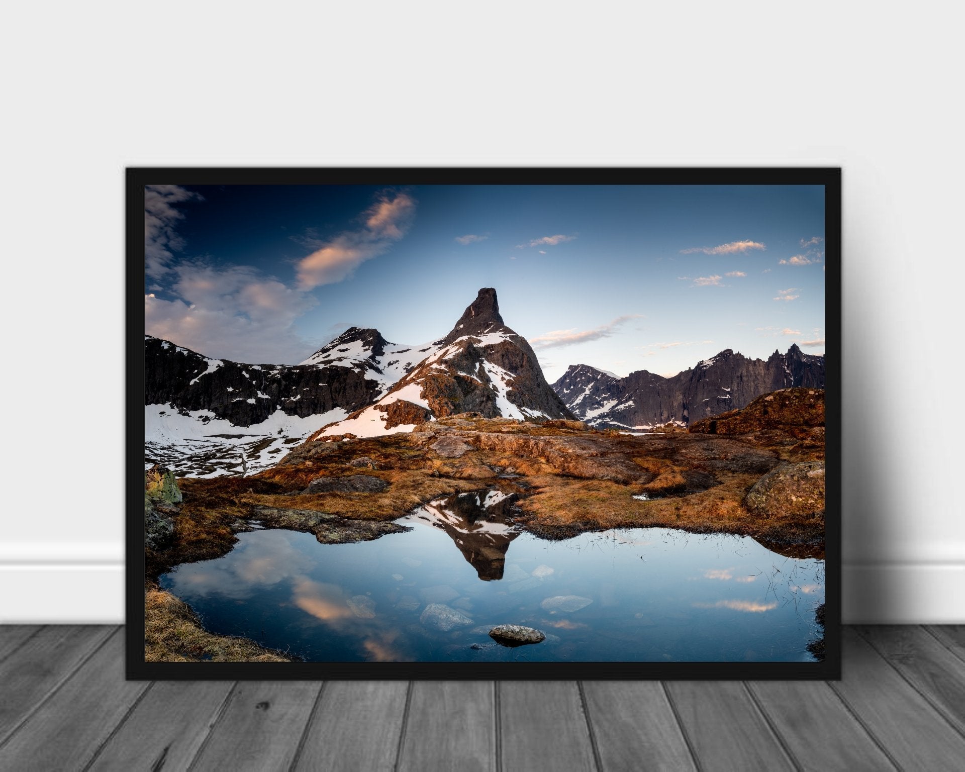 Flott utsikt fra Romsdalshorn og Trollveggen i Romsdalen. Nydelig både som plakat og lerret.