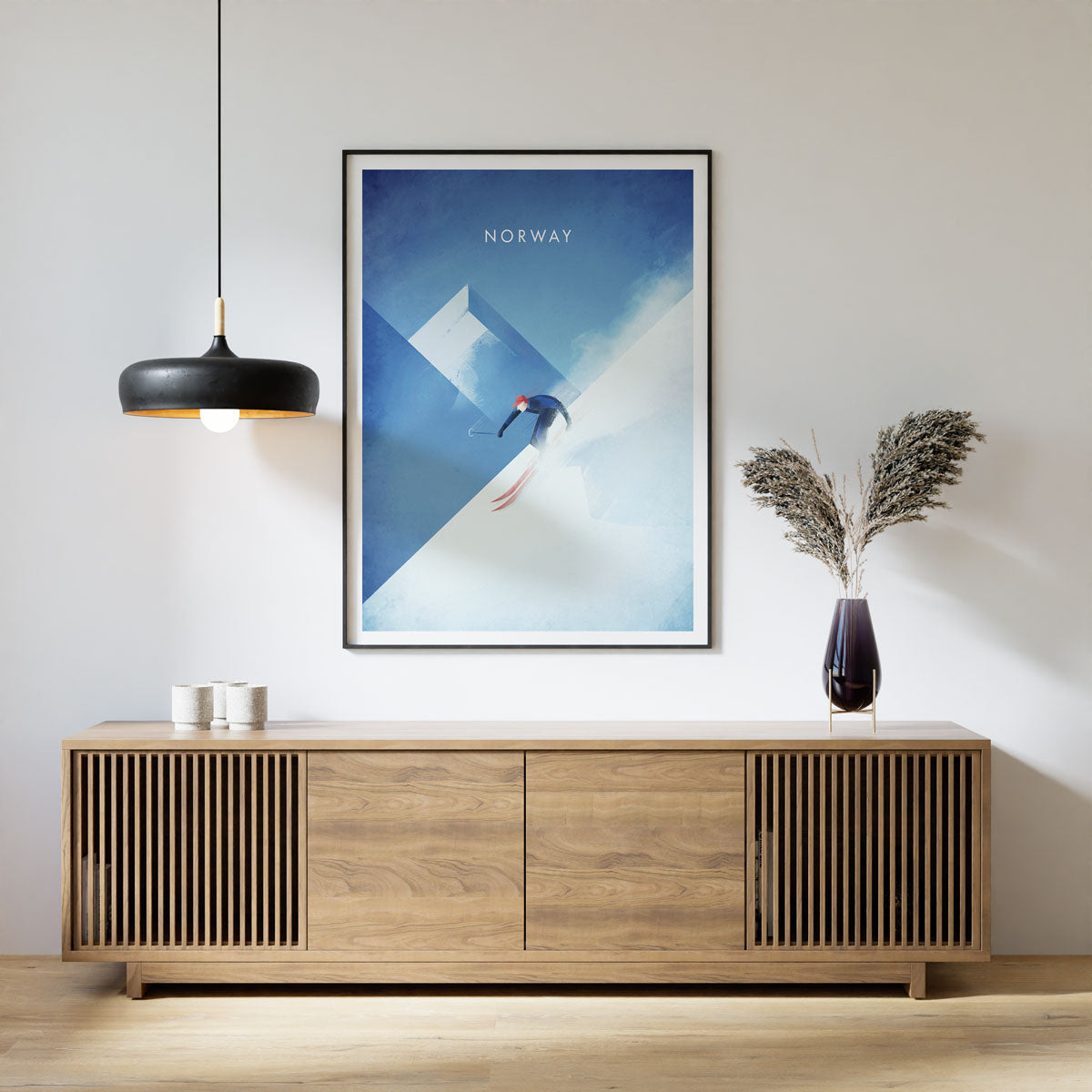 En flott kunstplakat av skikjører som selges i samarbeid med den engelske kunstneren Henry Rivers.