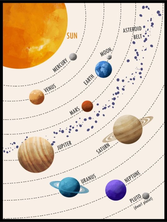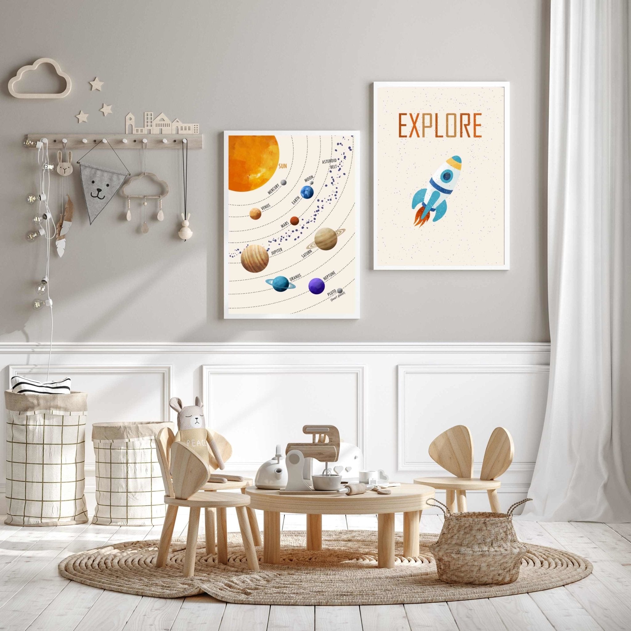 Kul plakat til barnerommet som viser planetene i solsystemet vårt. Kombiner gjerne sammen med våre andre verdensromplakater for å lage en stilig bildevegg på barnerommet.