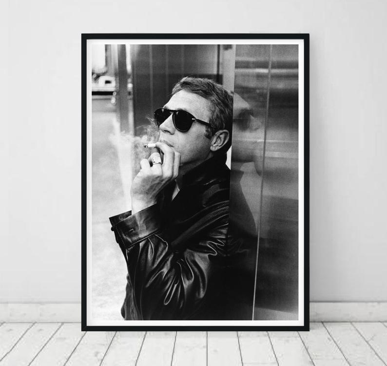 Plakat av ikoniske Steve McQueen. Denne posteren av Mcqueen er laget i retrostil og passer godt i de fleste rom. Plakaten av Steve McQueen er laget med hvit kant slik at den har en passepartout.
