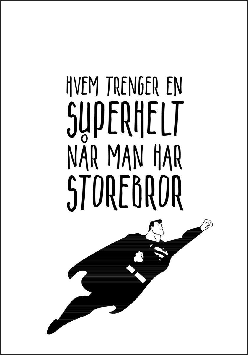 En koselig storebror plakat. "Hvem trenger en superhelt når man har storebror". Med supermann i kjent positur.