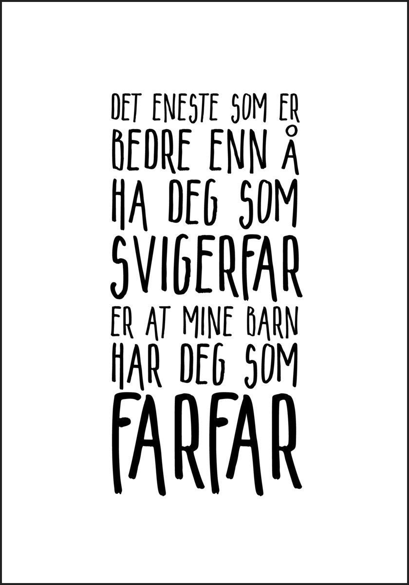 En morsom familieplakat som gleder - "Det eneste som er bedre en å ha deg som SVIGERFAR er at mine barn har deg som FARFAR".
