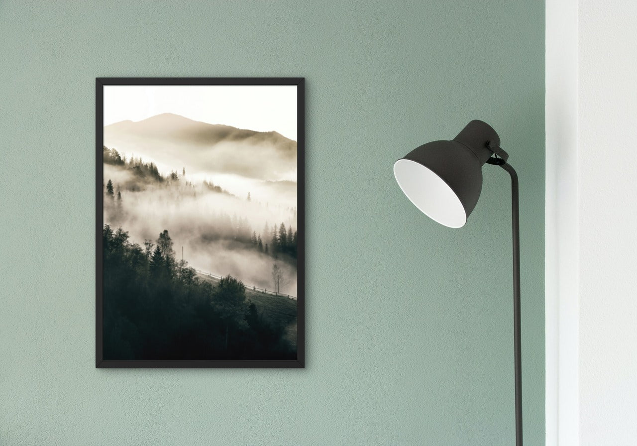 Plakat med motivet tåke i skogen. Passer godt sammen med andre naturplakater.