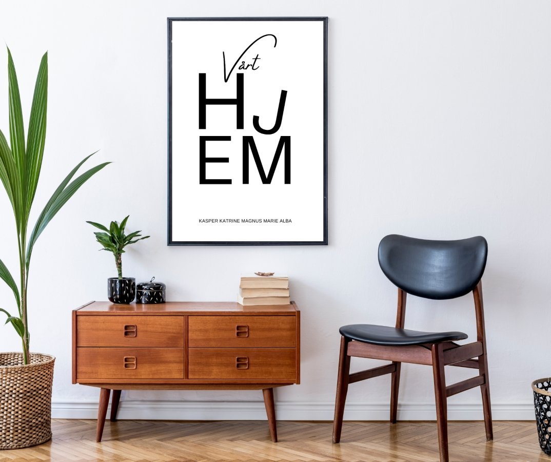 Koselig plakat. Tilpass plakaten og skriv inn familienavnene i husstanden.