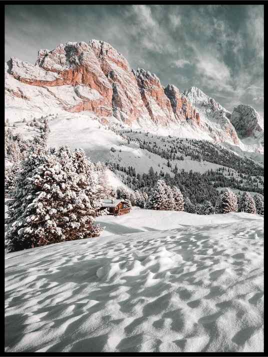 Denne plakaten passer svært godt på en bildevegg sammen med våre andre vinterplakater. Passer også godt som lerret.