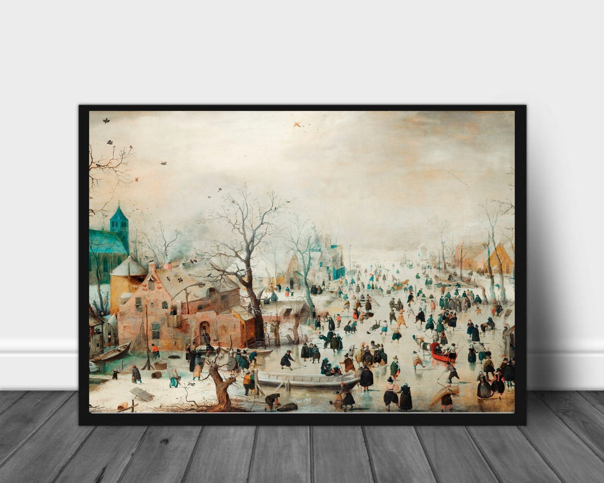 Vinterlandskap med skøyteløpere - Gammeldags juleplakat