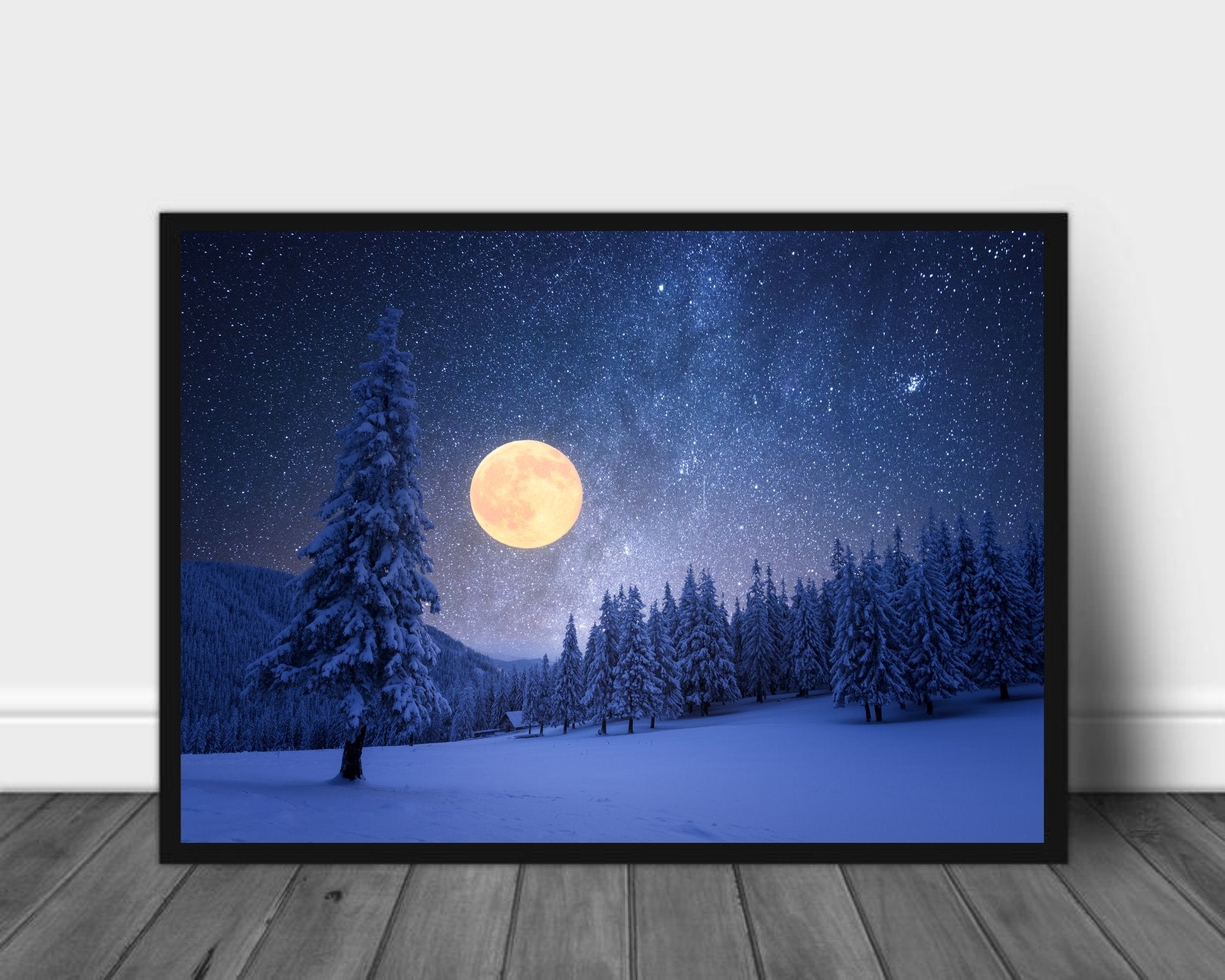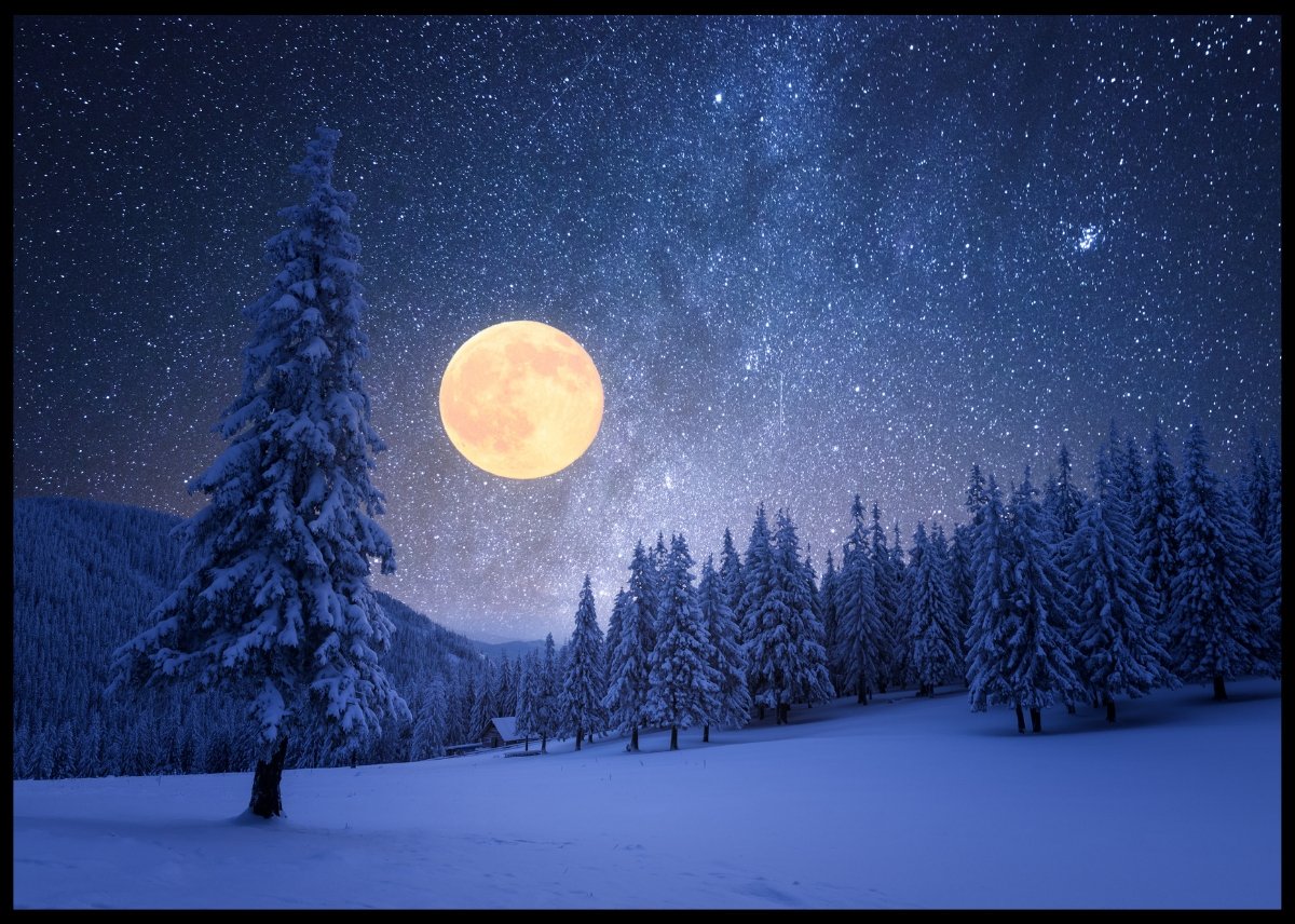 Plakat av praktfull fullmåne i vinterskogen