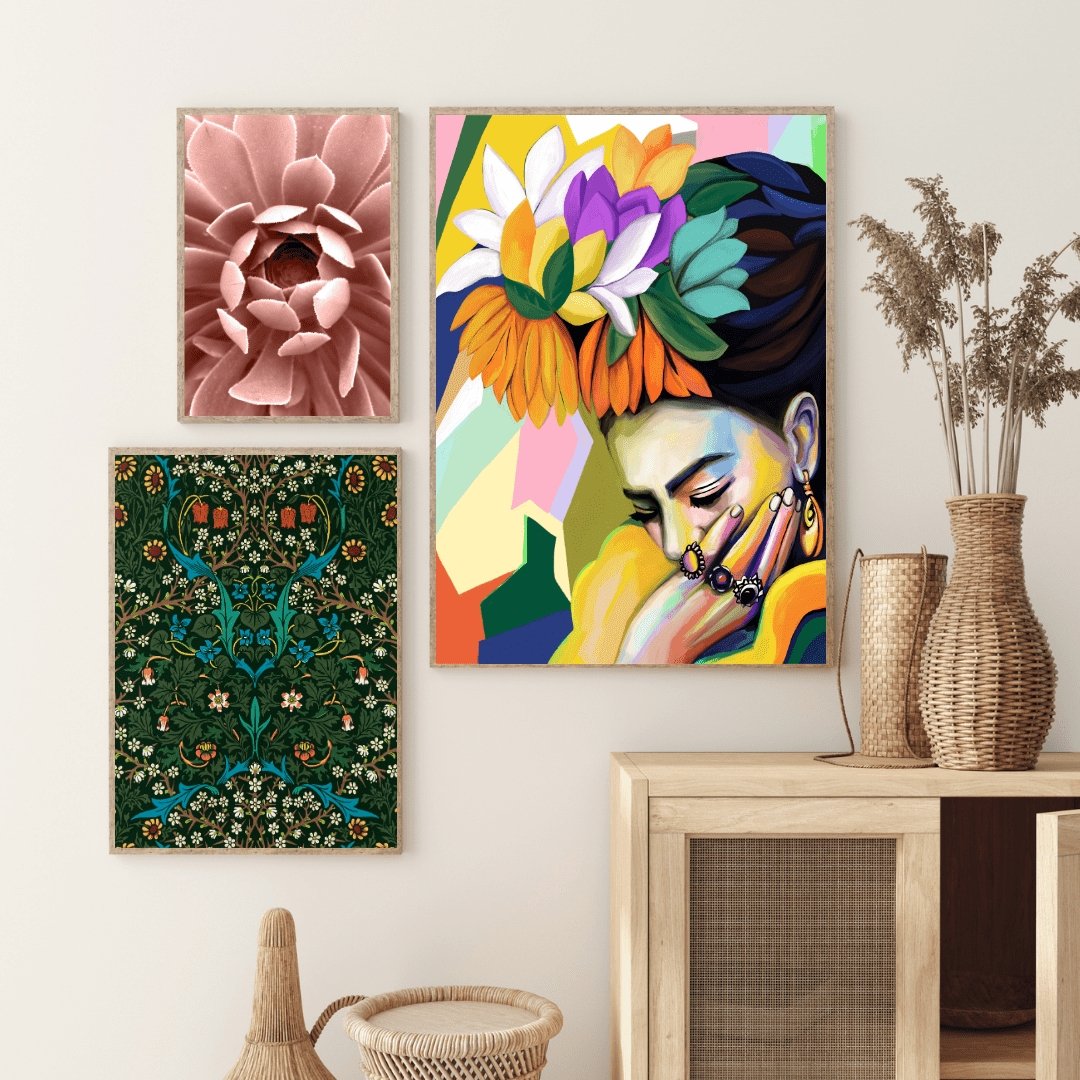 Fargerik botanisk kunstnerplakat med motiv fra William Morris.