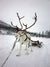Fint bilde av reinsdyr som trekker slede. Dette bildet kan kjøpes som plakat eller lerret.