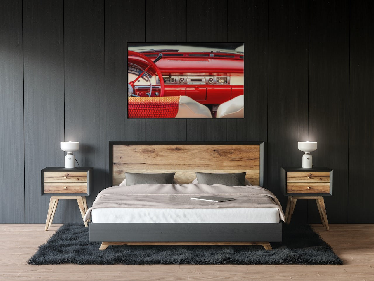 Plakatserie av gamle biler, tatt av ulike fotografer.