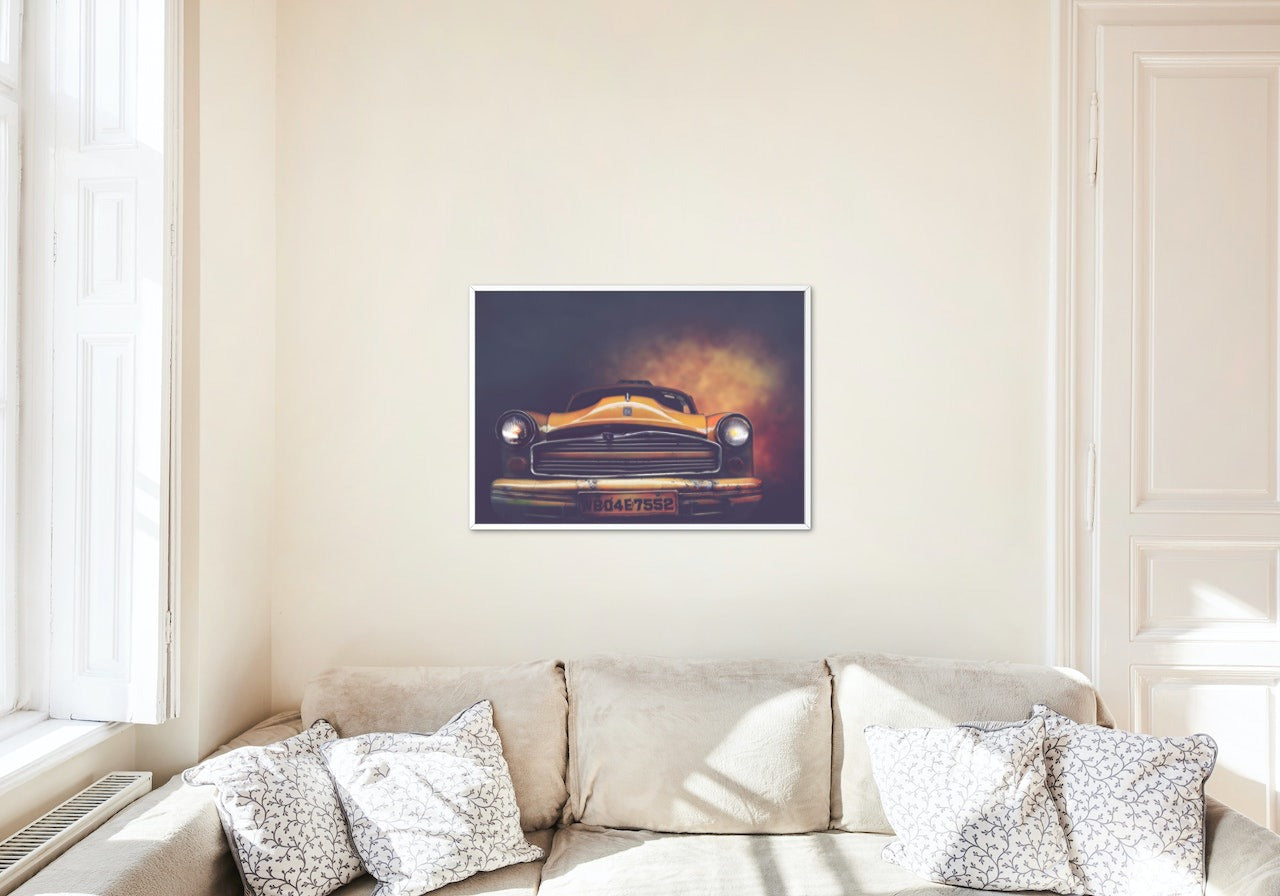 Plakatserie av gamle biler, tatt av ulike fotografer.