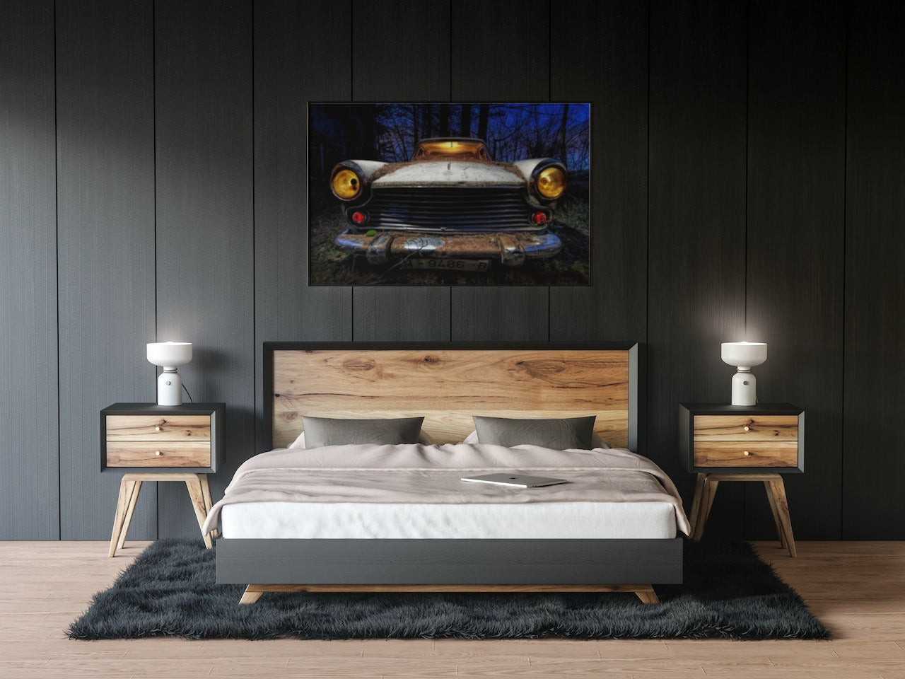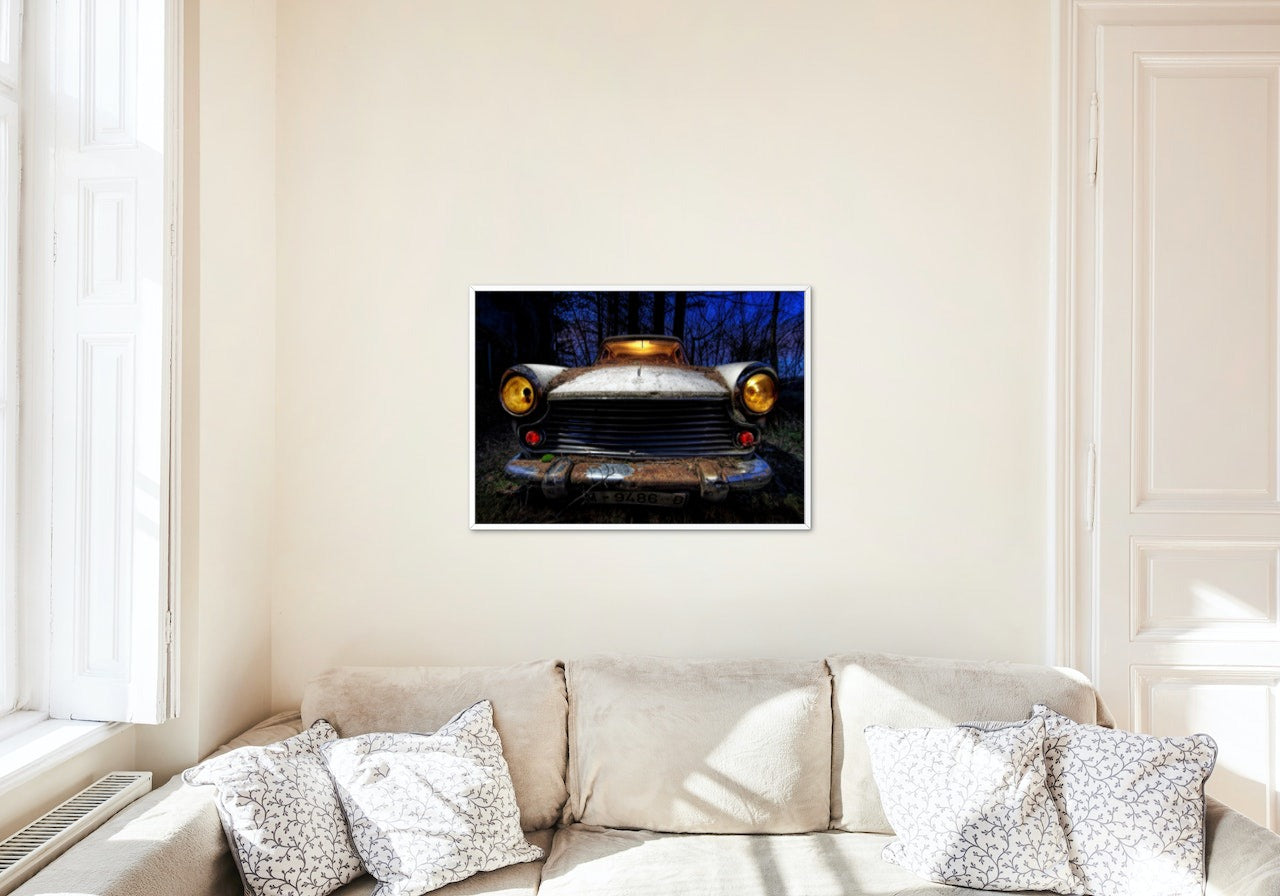 Plakatserie av gamle biler, tatt av ulike fotografer.
