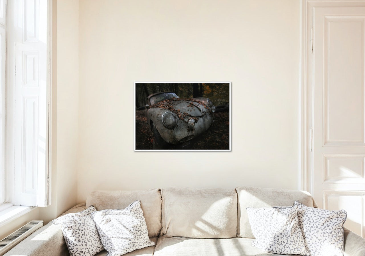Plakatserie av gamle biler, tatt av ulike fotografer.