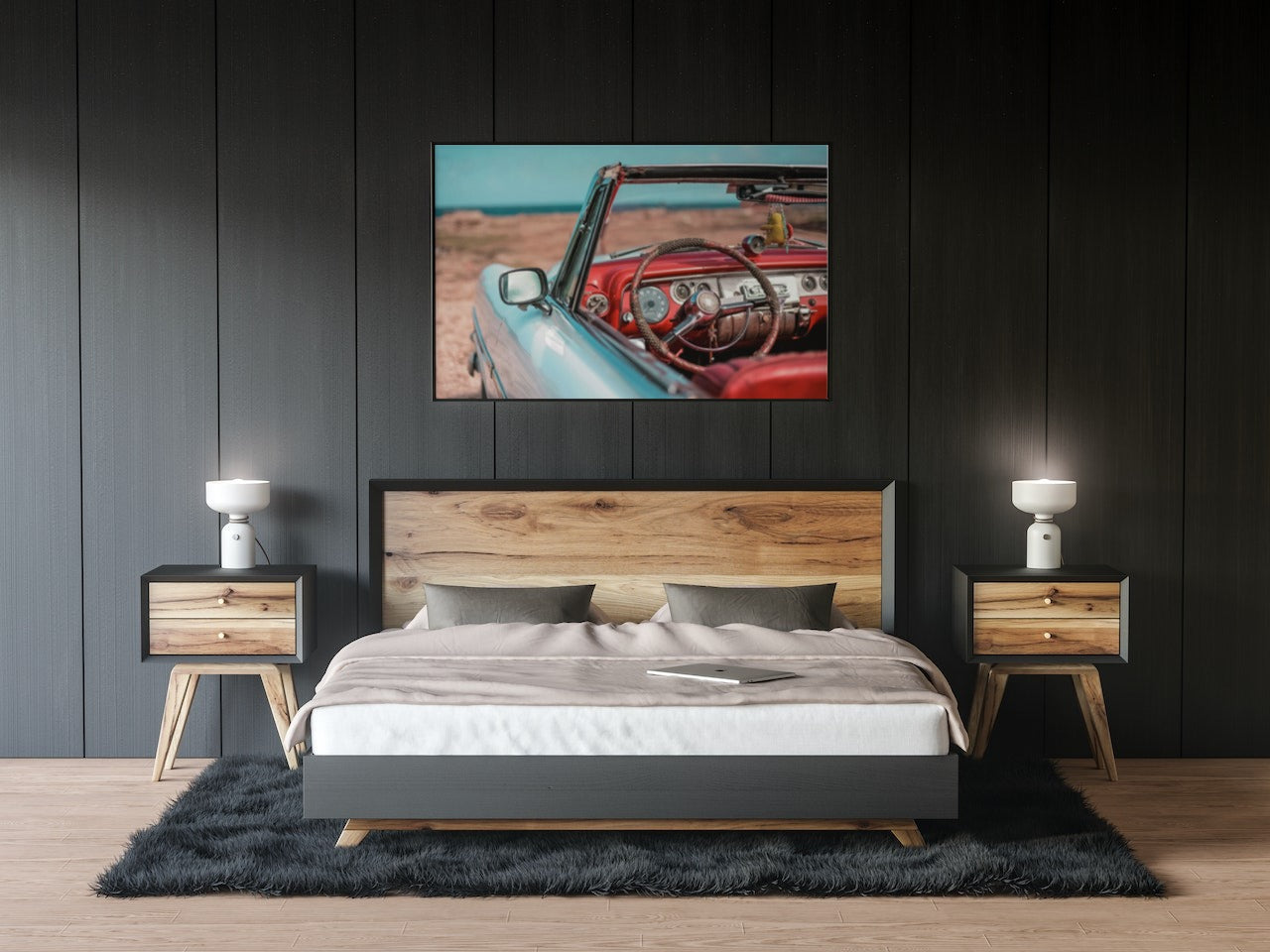 Plakatserie av gamle biler, tatt av ulike fotografer.