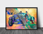 Plakatserie av gamle biler, tatt av ulike fotografer.