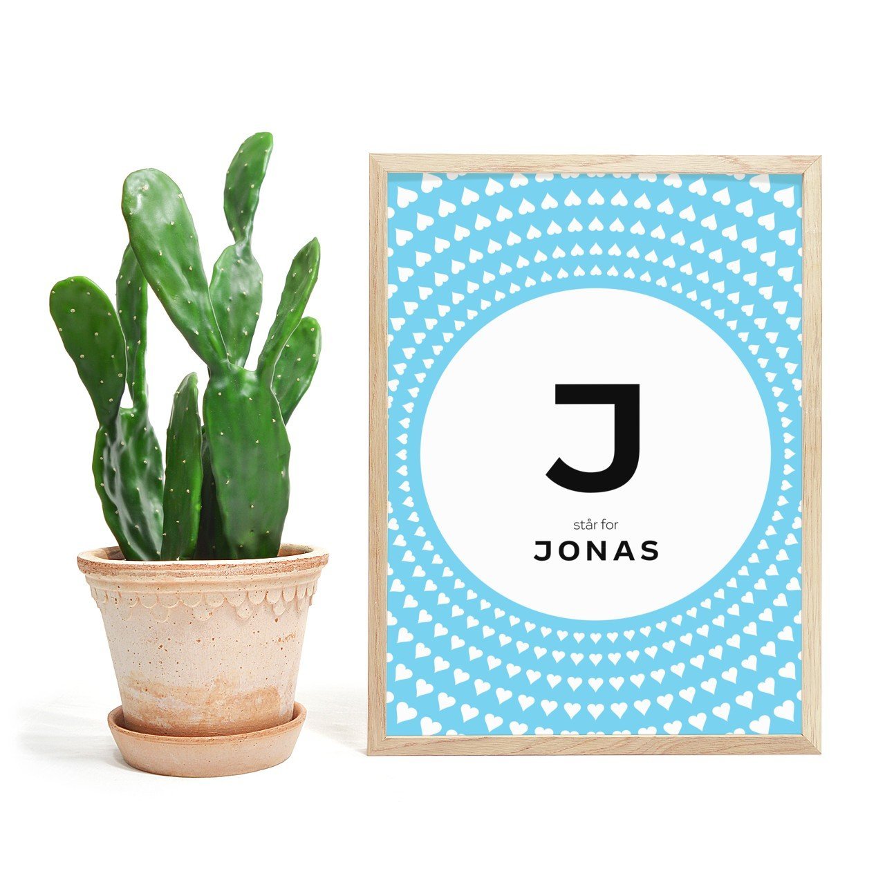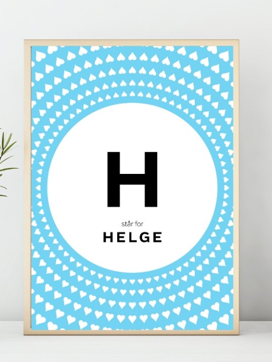 Søt barneplakat med hjerter og eget navn og bokstav. Husk å opplyse om hvilket NAVN som skal stå på plakaten i tekstboksen.