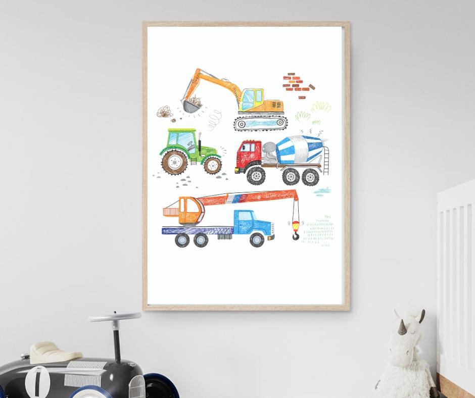 Mange gutter og jenter elsker traktorer, gravemaskiner og andre tunge kjøretøy. Vi har derfor laget flere postere av nettopp dette. Svært populært til barna!