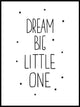 Søt barneplakat med teksten "dream big. Passer fint over barnesengen.