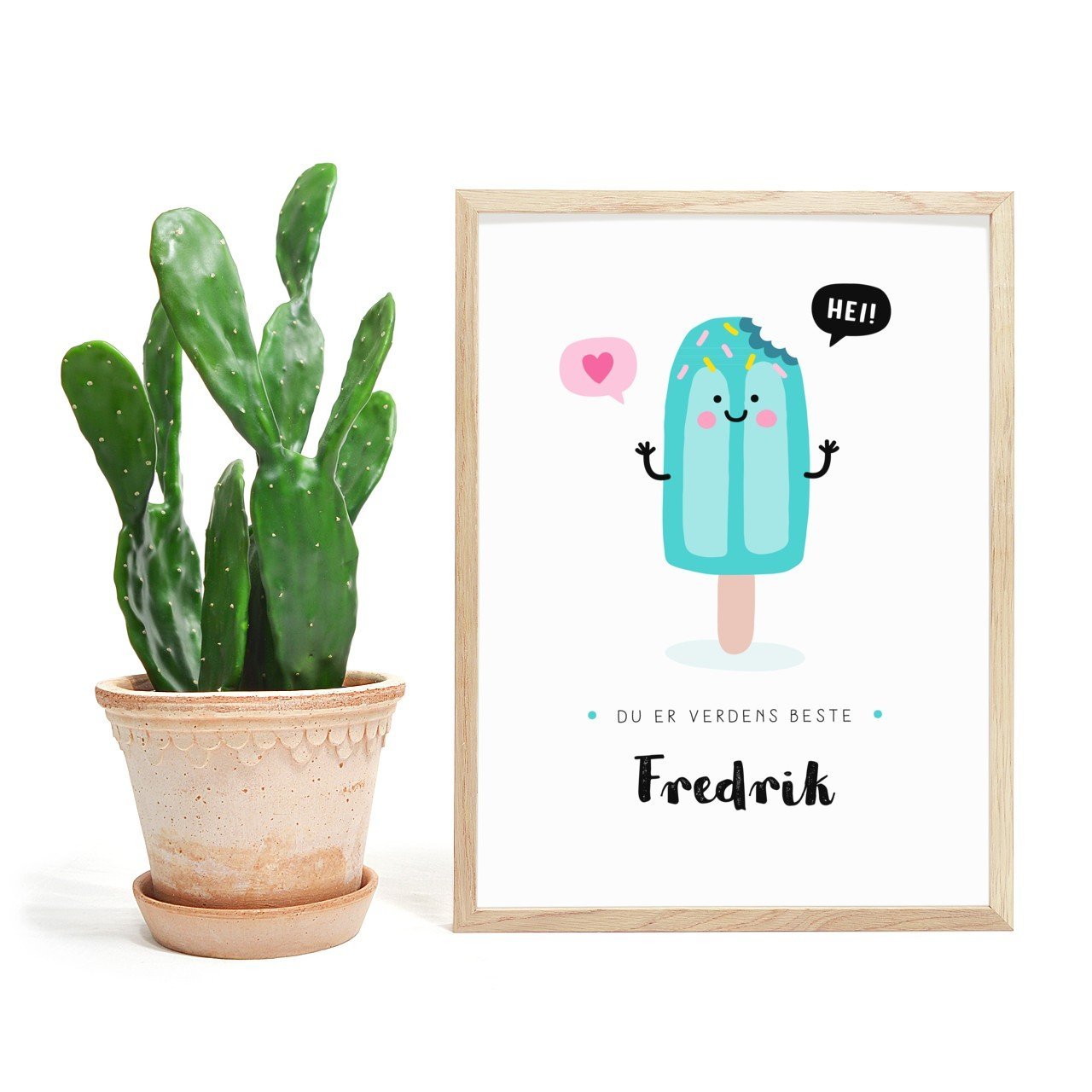 Du er Verdens Beste - Blå - Navneplakat som gjør deg glad