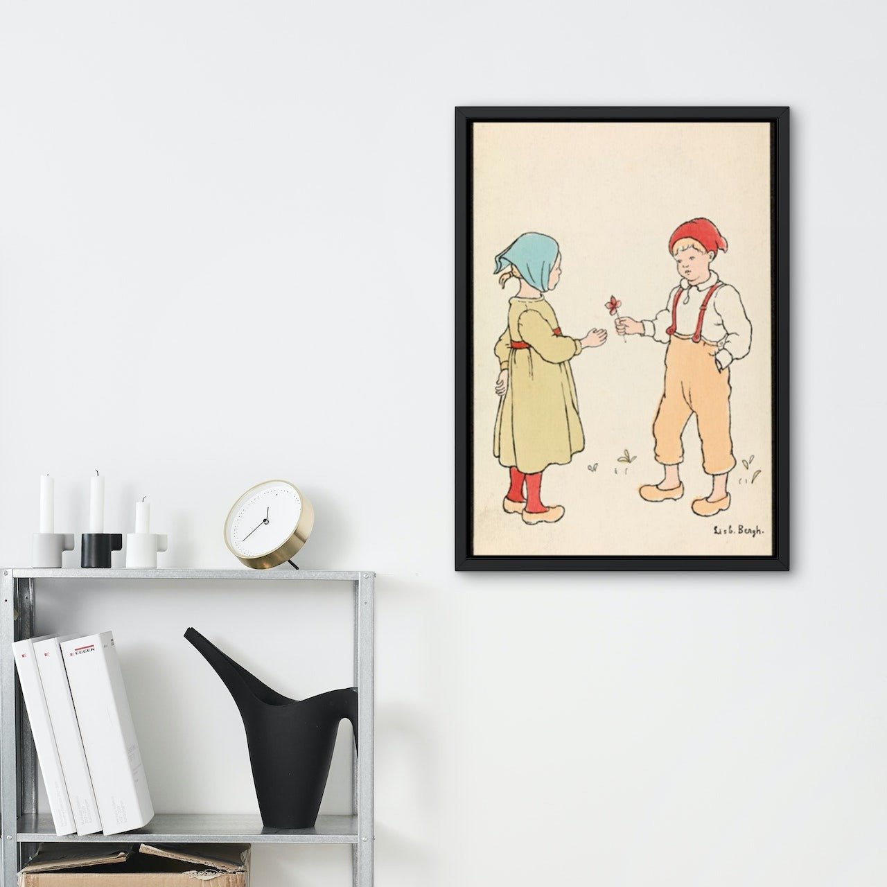 Poster av "Vandrer gutt". Et motiv tegnet av Lisbeth Berg. Hun var en kjent tegner i Norge født i 1861 og døde i 1927. Hun tegnet mye og illustrerte julefortellinger, tidsskrifter og billedbøker.