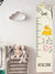 Målet på høydemåleren er 25x106 cm. Du kan måle barnets høyde fra 80 - 140 cm. Husk at høydemåleren må monteres slik at den første målestreken (80 cm) henger akkurat 80 cm fra gulvet.