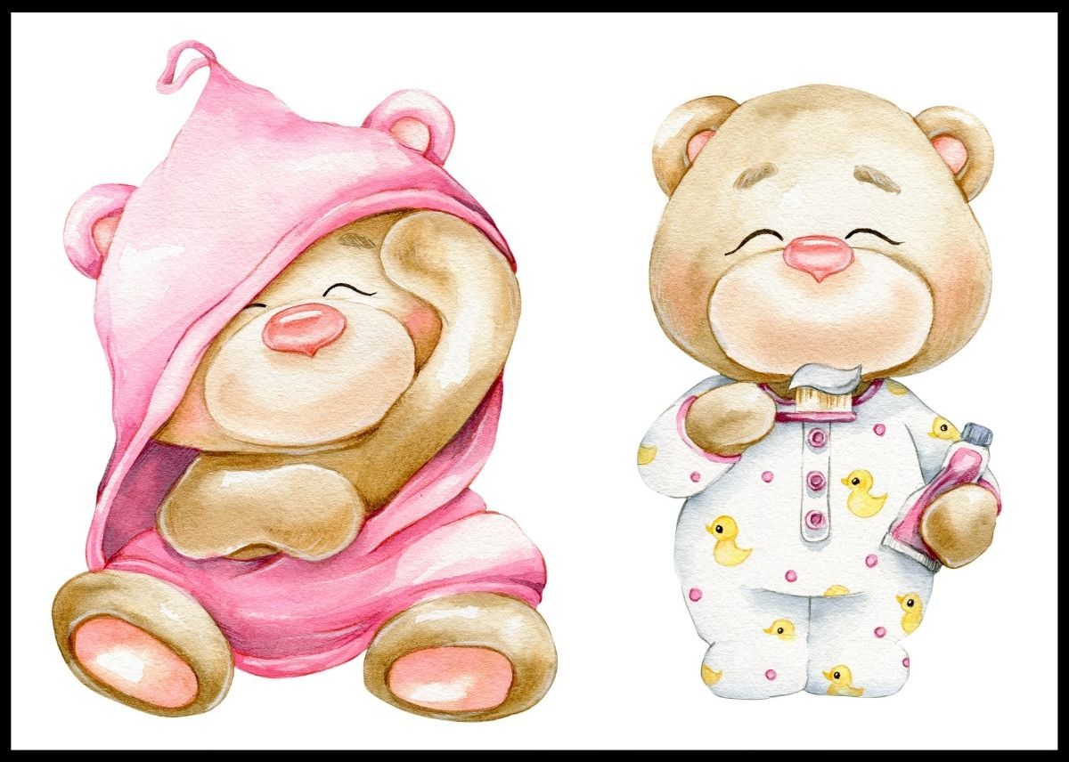 Poster av to søte teddybamser i rosa