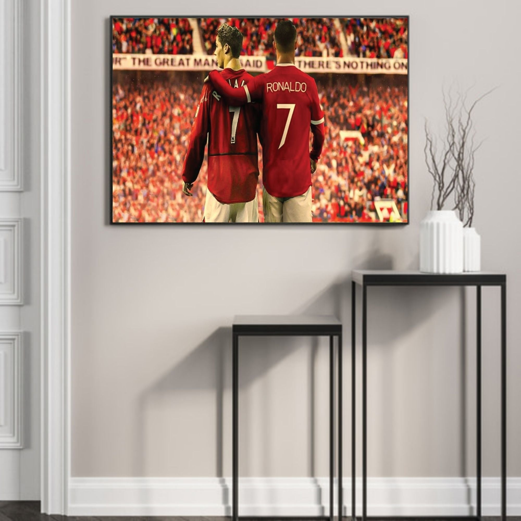 Kjempekul fotballplakat av Cristiano Ronaldo i Manchester United. Denne versjonen viser en ung Ronaldo da han spilte første gang i United, og Ronaldo etter comebacket. På samme motiv!