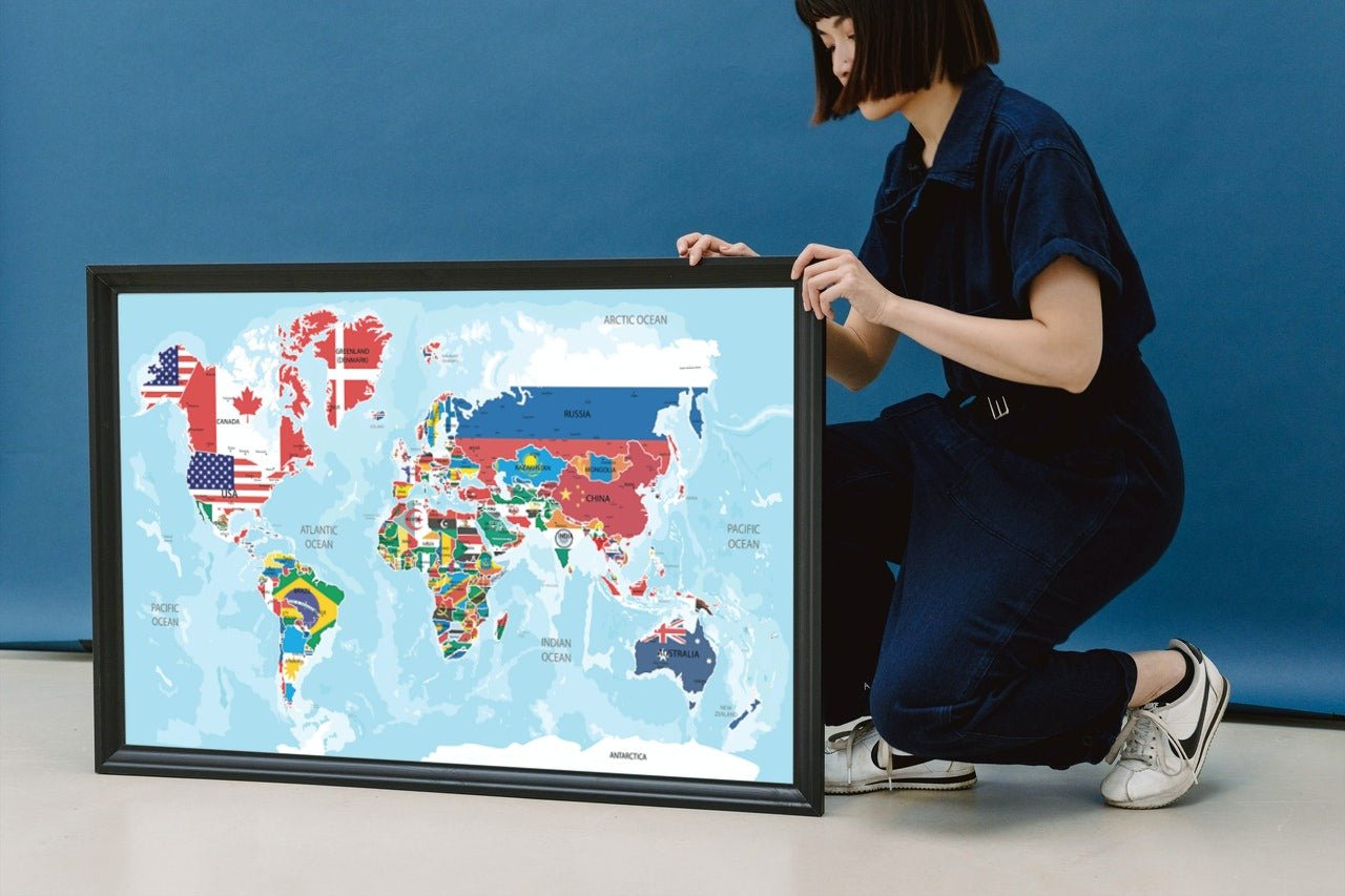 Pent verdenskart til barna. Her kan de lære om hvordan verden ser ut, samtidig som de får et innblikk i hvordan flaggene til de ulike landene ser ut.