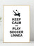Keep Calm and Play Soccer plakat. Du velger navnet som skal stå på fotballplakaten.